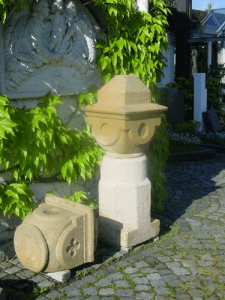 Neoromanische Gewölbeteile (Stütze und Kapitell) aus Dettenhäuser Sandstein