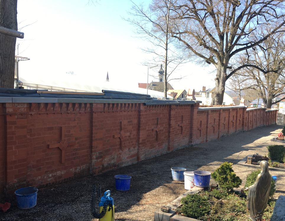 Sanierung der Friedhofsmauer an der Heufelder Straße in Ehingen.