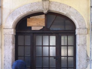 Kleine Restaurierungen werden an historischen Gebäuden ständig ausgeführt, hier z.B. eine Vierung im Klosterbezirk Blaubeuren.